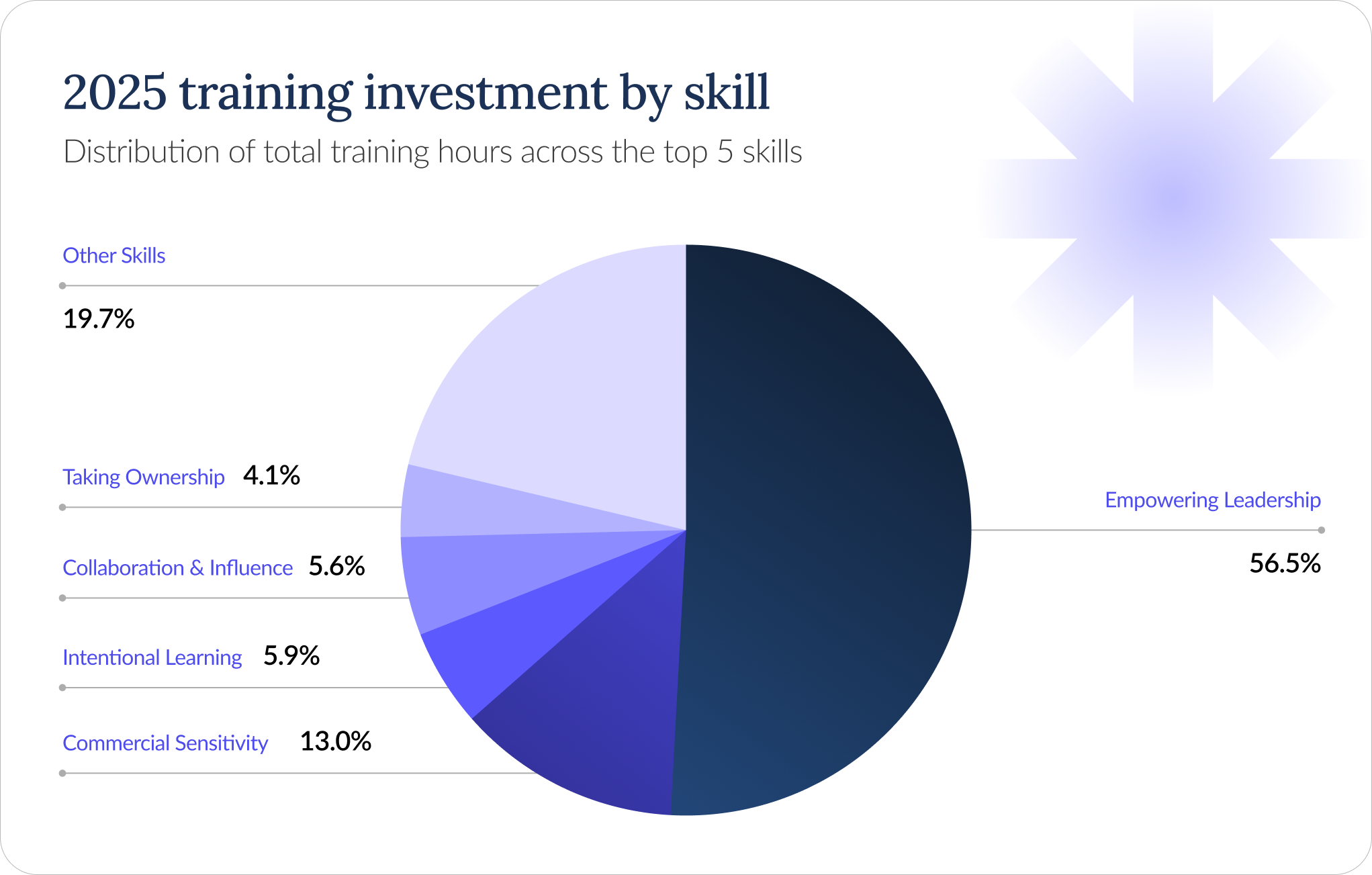 Empowering leadership training investment has grown continuously for three years and now accounts for more than half of all training hours, surging another 126% from 2024 to 2025.