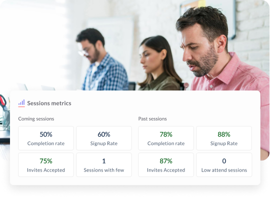Warte nicht bis zum Programmende, um zu sehen, ob es wirkt. Überwache Anwesenheit, Engagement und Teilnahme live – genau im Moment des Geschehens.