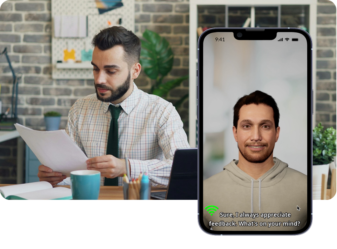 Onze interactieve AI-rollenspellen laten deelnemers belangrijke vaardigheden oefenen in een veilige omgeving. Ze vergroten het zelfvertrouwen met gepersonaliseerde, data-gedreven feedback die gericht is op concrete verbetering.